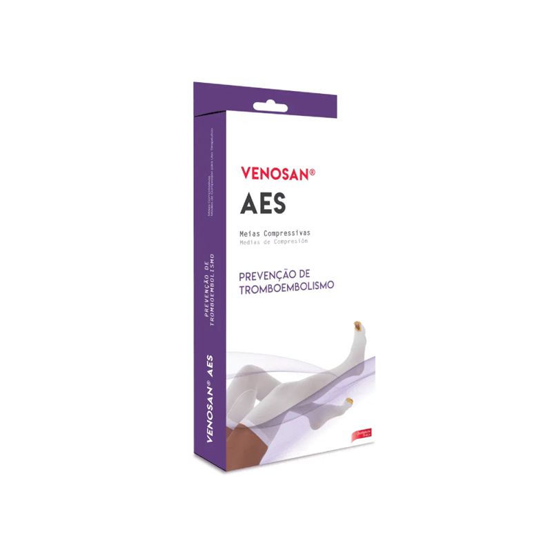 Meia Antitrombo e Antiembolismo branca tamanho G 18mmHg (AES) com abertura nos pés VENOSAN.