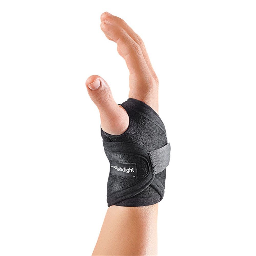 Posicione o orifício da munhequeira no polegar e passe as abas em torno do punho. Ajuste através das tiras em nylon com fecho aderente no plush do produto com compressão adequada ao seu conforto.
