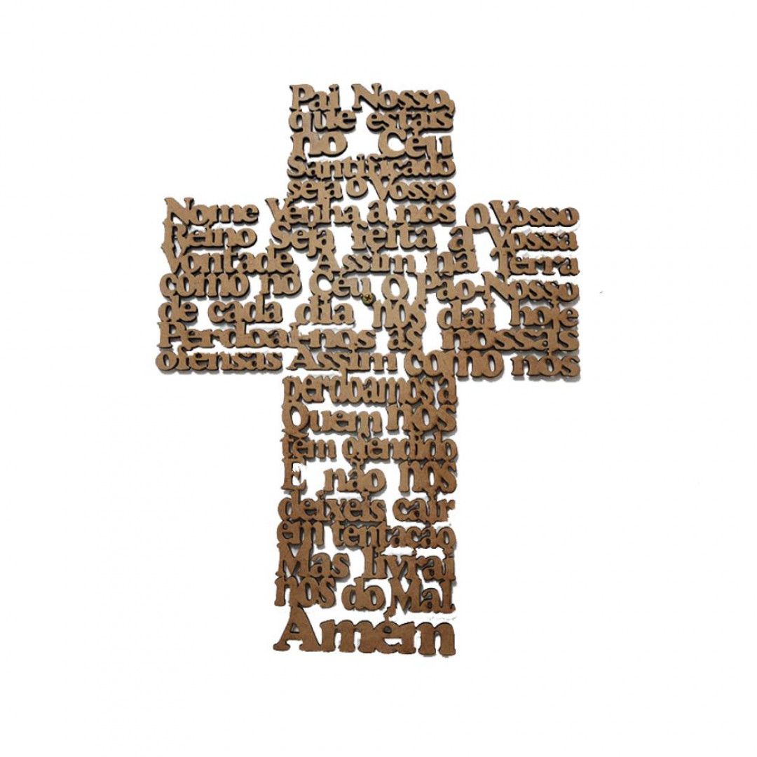 Pai Nosso Cruz 40cm x 30cm, com espessura de 3mm em Madeira MDF de primeira qualidade, corte realizado à laser e pintura na mdf natural.
