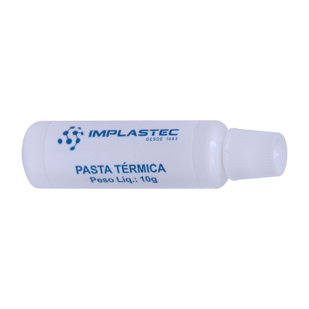 Pasta Térmica de silicone Implastec é especialmente indicada para montagens onde se exige um perfeito acoplamento entre o semicondutor e o dissipador de calor;Melhora a condução, através da eliminação do ar retido na montagem e pode operar em temperaturas de até 300°C;Pasta Térmica de silicone Implastec é obtida pela conveniente aditivação de polímeros de silicone;Utilizada como condutora de calor nas montagens eletro-eletrônicas devido à alta rigidez dielétrica e excelente condução térmica, a IPT possui alta resistência à formação de arcos e não tem ponto de gota;É especialmente indicada para montagens onde se exige um perfeito acoplamento entre o semicondutor e o dissipador de calor. A IPT melhora a condução, através da eliminação do ar retido na montagem;Sua formulação confere à IPT ser inerte quimicamente, não corrosiva, atóxica e tem excelente estabilidade. Pode operar, sem perder suas propriedades principais, em temperaturas de até 250 °C. Por um curto período suporta temperatura de 300 °C;Principais Aplicações:A IPT é amplamente utilizada nas montagens de semicondutores e demais componentes onde haja necessidade de eliminação eficiente do calor gerado;Além da montagem de semicondutores, a IPT tem sido usada, com sucesso, para melhorar o tempo de resposta de termopares e de termoresistências, em sistemas de medição de temperatura;É usada também como pasta condutiva em trocadores de calor de sistemas de refrigeração, em acoplamento térmico das resistências dos canhões da injetora de plástico, entre outros;Modelos:A pasta térmica implastec são produzidas nas consistências NGLI 2 e 3;@Dados técnicos:Penetração: (265-295) ou (220-250) (1/10 mm);Exudação: 0,4%;Componente Básico: Silicone de alto peso molecular;Condutividade térmica: 0,4 w/mk (conforme norma técnica ISO 8301:1991);Ponto de gota: Inexistente;Cor: Branca (levemente brilhante);Solubilidade em água: 0,04g / 100mL;Transporte e Armazenagem:A IPT deve ser transportada e armazenada conforme prática comum com produtos químicos. Verifique a classificação deste produto antes de transportá-lo;Manuseio e Método de Aplicação:A IPT pode ser facilmente aplicada com o auxílio de espátula, pincel ou via bombeamento pneumático. Durante a aplicação, recomenda-se a utilização de óculos de segurança. Nunca reutilize as embalagens para outros fins;