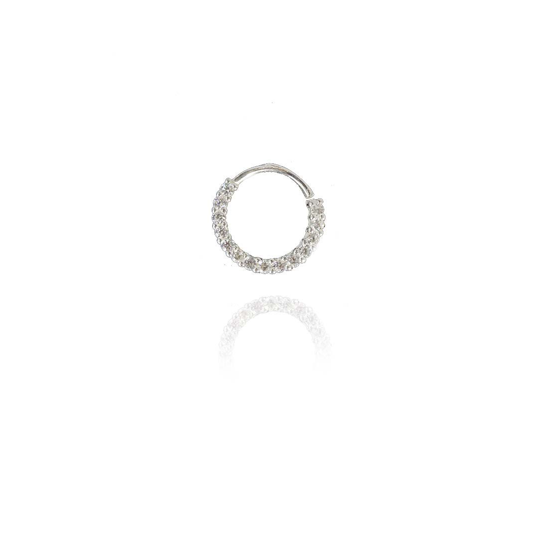 Piercing Círculo Trabalhado com Mini Zircônias em Prata 925, é um acessório deslumbrante que irá adicionar um toque de estilo e sofisticação ao seu visual.