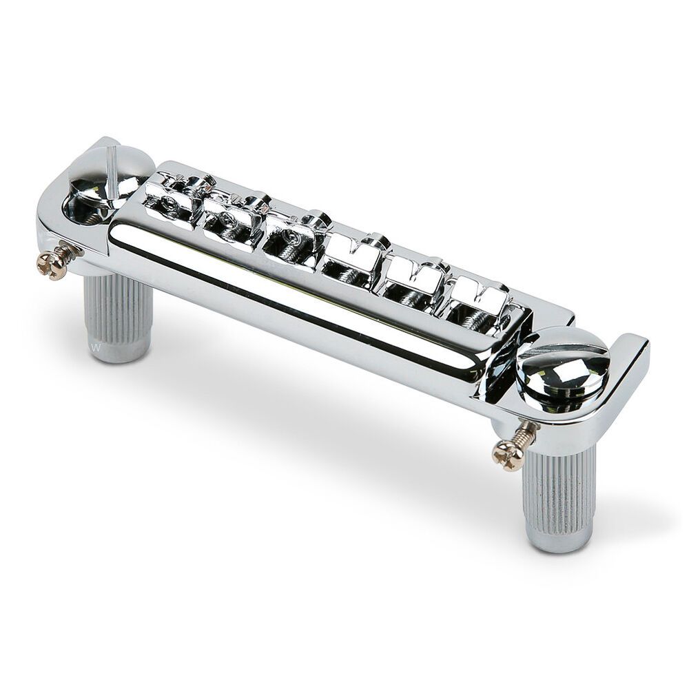 Ponte para Guitarra, estilo Turn Over (Cordal), fixa ajustável, acabamento cromado, Spirit Guitar Parts - SL2N-CR. Produzida em zinco fundido, as pontes Turn Overs se encaixam perfeitamente nas guitarras de corpo sólido e as cordas se prendem de frente para trás. Inclui dois pinos com rosca para fixação, buchas de fixação e chave sextavada.