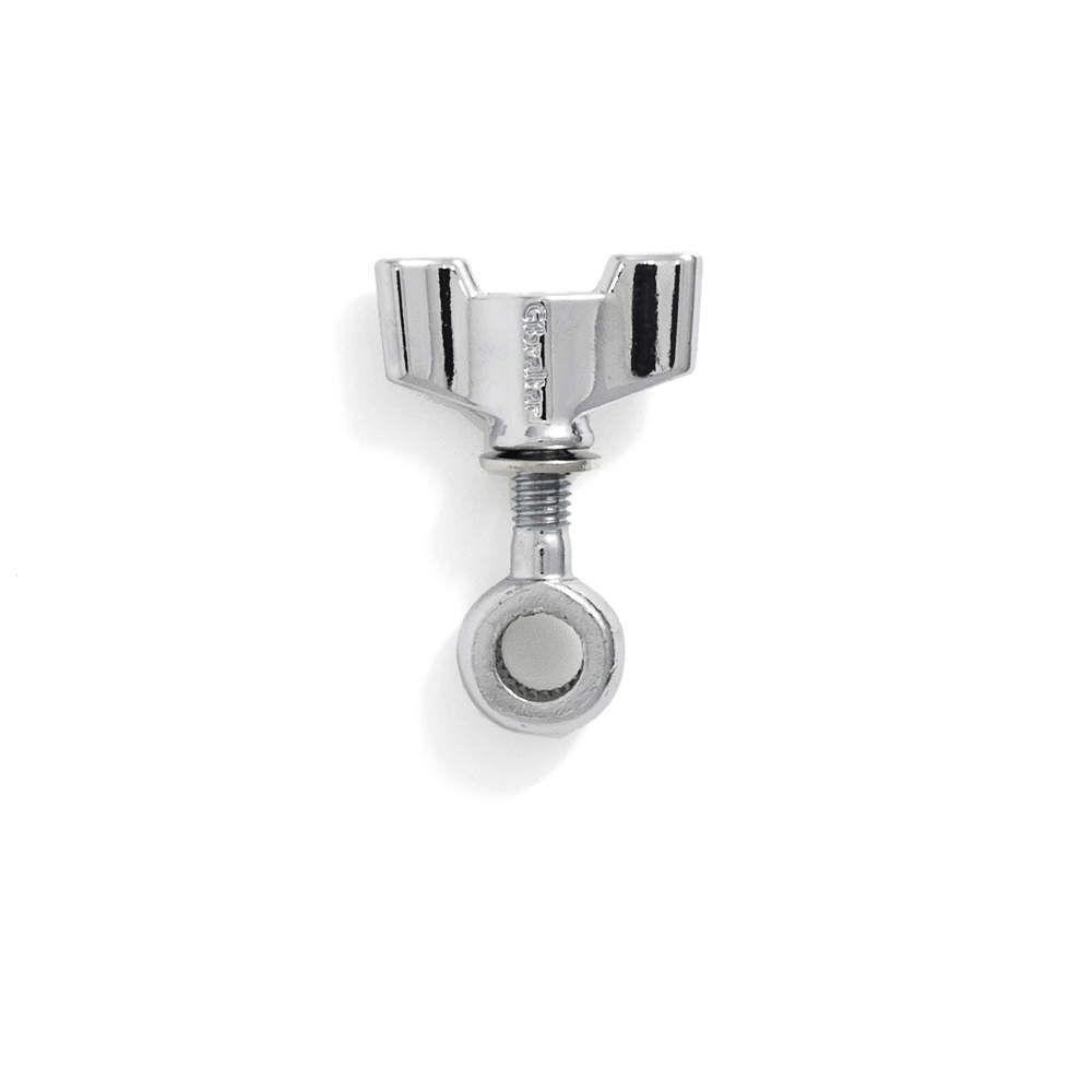 Porca Borboleta com Anel para Percussão, inclui arruela, parafuso e porca borboleta, formando o conjunto a ser fixado a hastes de 9,5mm a 10,5mm de diâmetro. Gibraltar SC-EB.