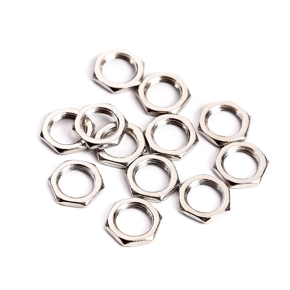 Porca para Jacks de Conexão e Potenciômetros 3/8, em acabamento niquelado, 12 unidades, Spirit Guitar Parts - 3/8-POT-NI.
