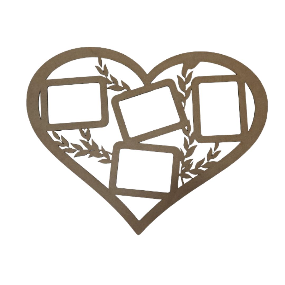 Lindo porta retratos cortado a laser, para 4 fotos decorando o seu ambiente em formato de coração, para relembrar as pessoas amadas.