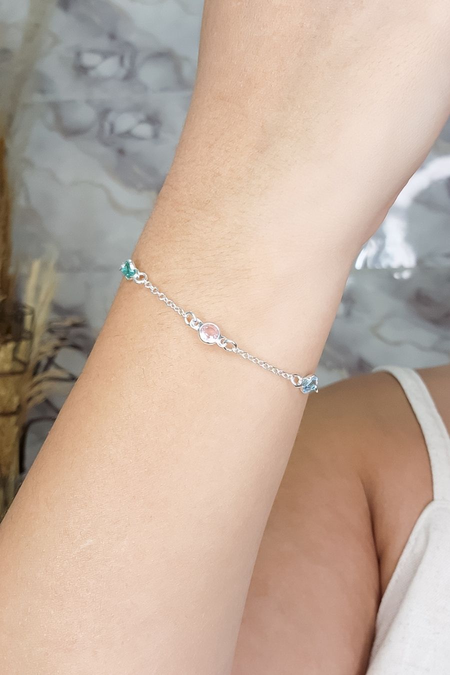 Esta pulseira deslumbrante apresenta uma variedade de zircônias coloridas em prata 925, criando um visual vibrante e elegante. Seu design versátil permite usá-la sozinha para um toque de cor ou combinada com outras pulseiras para um estilo mais ousado e moderno.