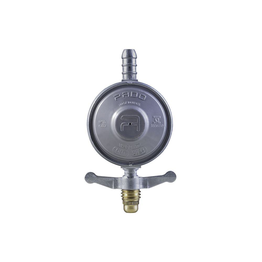O Regulador de Gás possui saída para mangueira com diâmetro de 12 mm e entrada para rosca borboleta 5/8”. Este produto é composto por corpo e componentes internos em zamac, alumínio, aço e plástico; pino e rosca de acoplamento em latão; e diafragma, obturador e cone em borracha nitrílica.