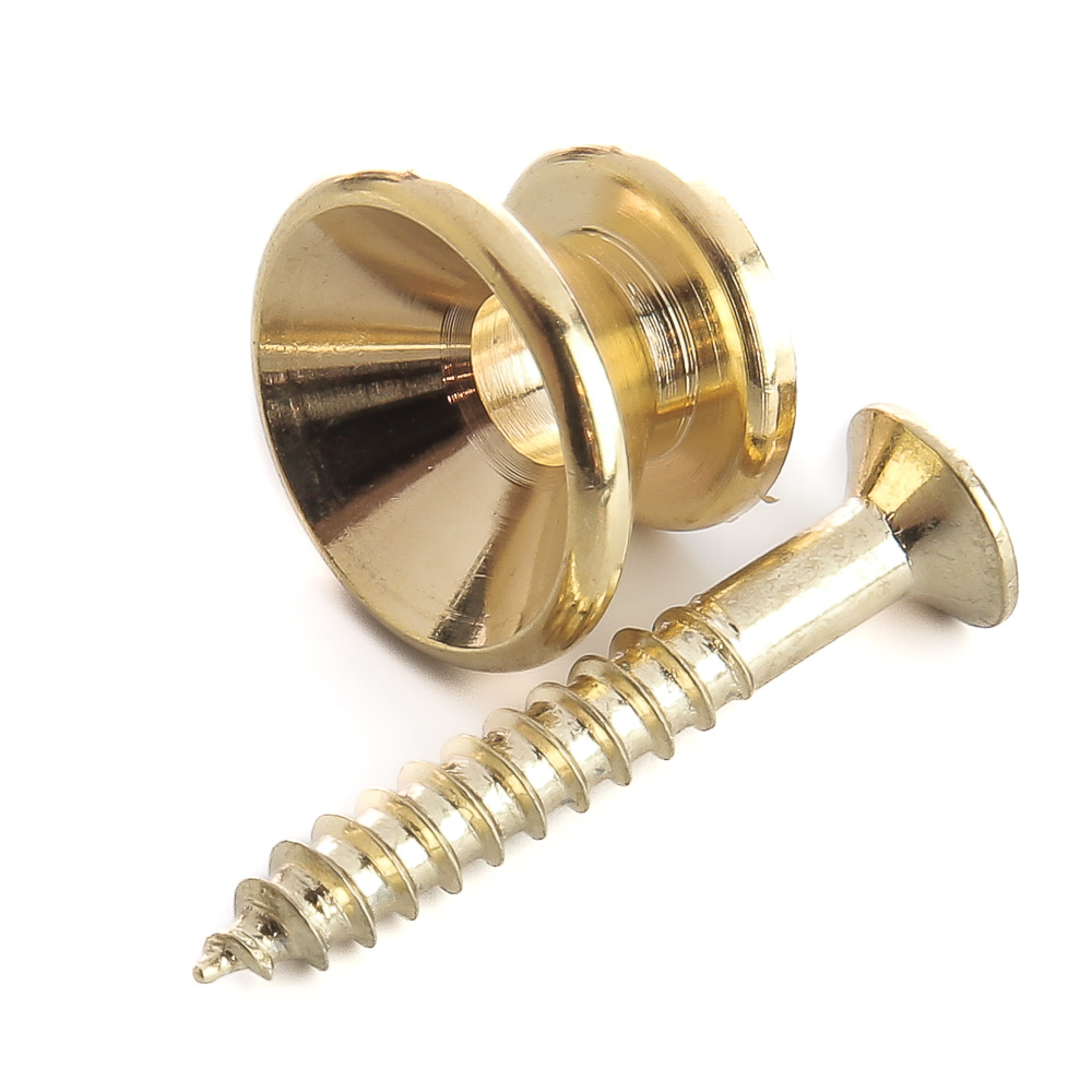 Roldana para Correia de Instrumentos em acabamento dourado modelo Vintage estilo Fender, com parafusos, 12 unidades, Spirit Guitar Parts - SEP142-GD. - Roldana de metal para correia - Acompanha parafusos para fixação - Diâmetro exterior 14.0mm.