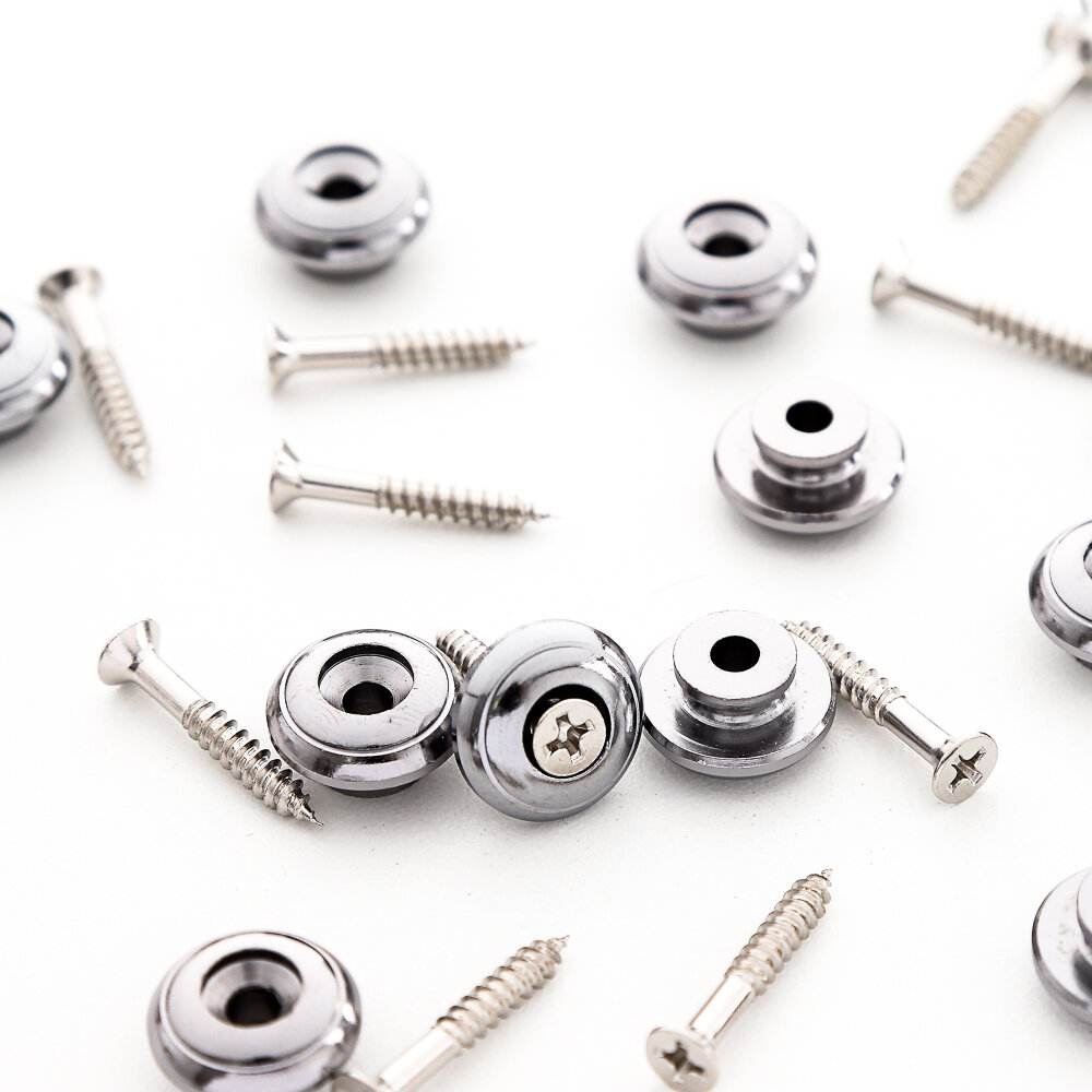 Roldana Abaulada para Correia de Instrumentos cromada, com parafusos, 12 unidades, Spirit Guitar Parts - SEP170R-CR. - Roldana abaulada de metal - Acompanha parafusos para fixação - Diâmetro exterior 17.0mm.