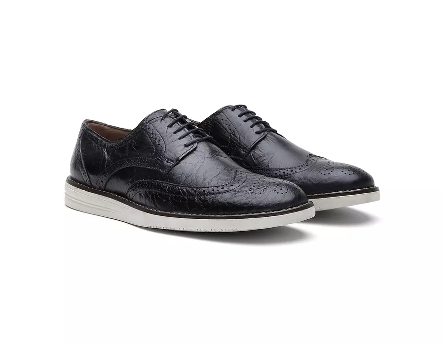Sapato Casual Masculino, confeccionado em Couro Fóssil (origem Bovina) na cor Preta. Com solado em Latex (borracha natural) e forração em Couro. Os Sapatos Masculinos desta linha são de fino acabamento e confortáveis e modernos - 100% feito-a-mão / Autêntico Couro de origem Bovina em acabamento natural / 100% Couro. Os calçados da nossa loja virtual têm garantia contra defeito de fabricação.