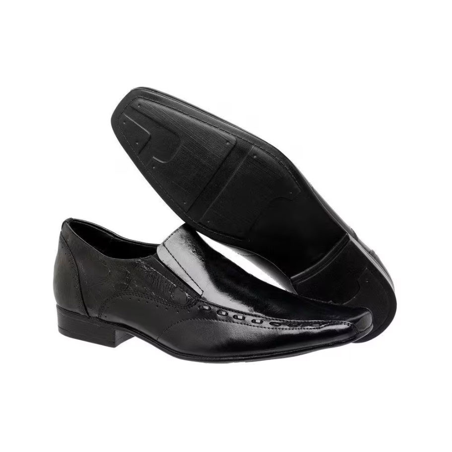 Calçado Masculino Clássico/Social confeccionado em Napa Itália Preto com detalhes em Napa Estampa Úmbria. Com solado em Látex e forração em p. U., os Sapatos Masculinos desta Linha são de fino acabamento. 100% Feito-a-Mão / Autêntico Couro de origem Bovina / 100% Couro. Modelagem exclusiva com designer moderno e arrojado. Os Calçados da nossa loja virtual tem Garantia contra defeito de fabricação Direto da Fábrica.