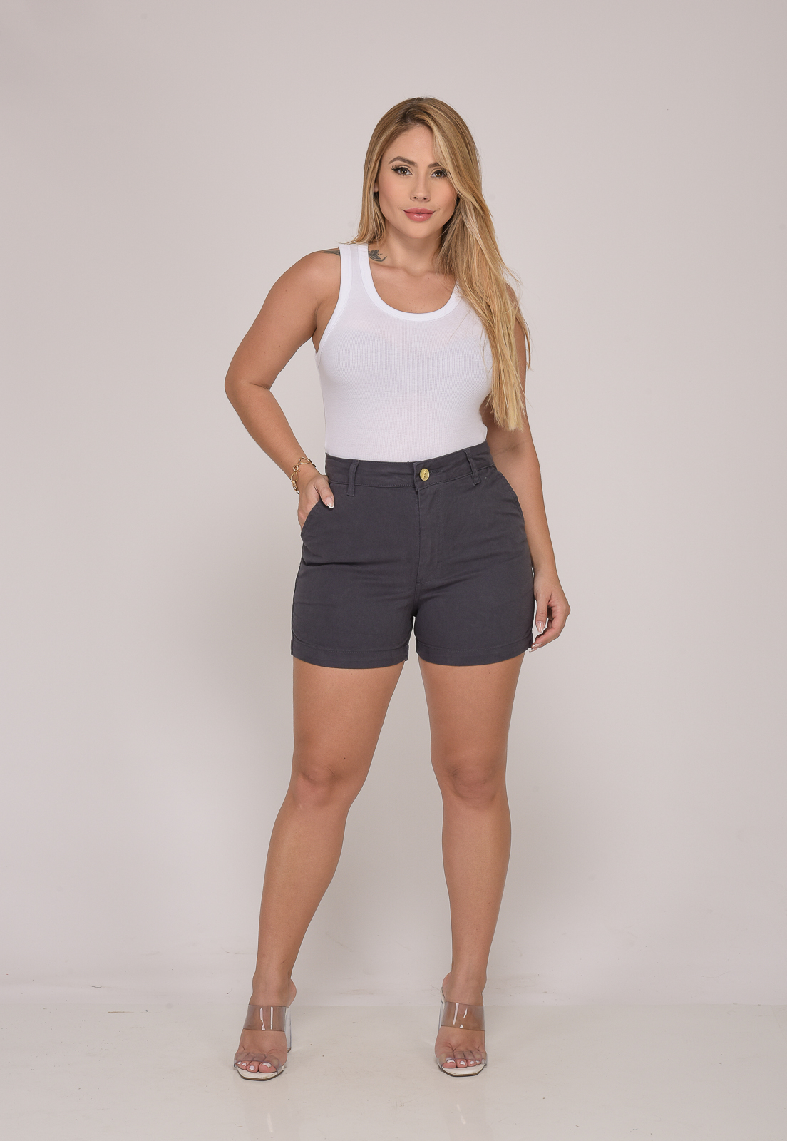 Shorts Feminino 7933 Cinza Escuro [F075]
