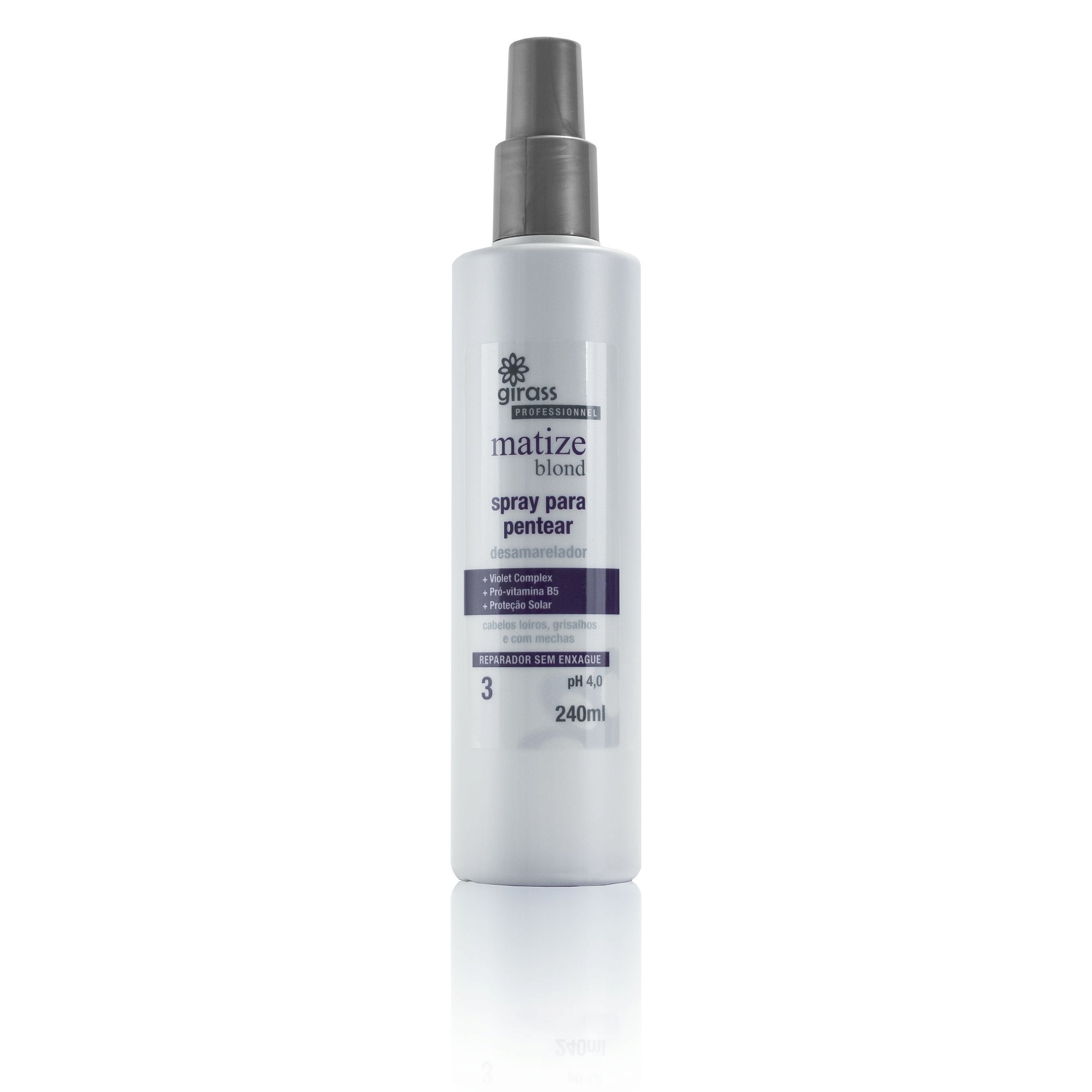 Condiciona, protege contra raios UV, nutre e repõe as proteínas, tonificando e reparando as cutículas. Proporciona matização aos cabelos loiros e grisalhos, devolvendo brilho platinado e maleabilidade aos cabelos.