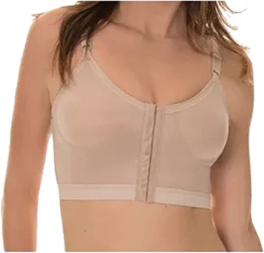 "O sutiã pós cirúrgico, é ideal para recuperação pós cirurgia de mamoplastia, além de amenizar a dor pós operatório, reduz o risco de sangramento por meio da compressão dos seios, mantém as mamas no lugar, evita a flacidez e previne a formação de queloide e fibrose. Confeccionado em material resistente e de qualidade, com abertura frontal para facilitar ao vestir e duas regulagens em colchetes, não possui bojo nem armação de ferro, tornando-a altamente confortável, prática e contribuindo para o seu bem estar. Diminui o inchaço, a retenção de líquido e proporciona uma circulação adequada, levando uma cicatrização saudável.
