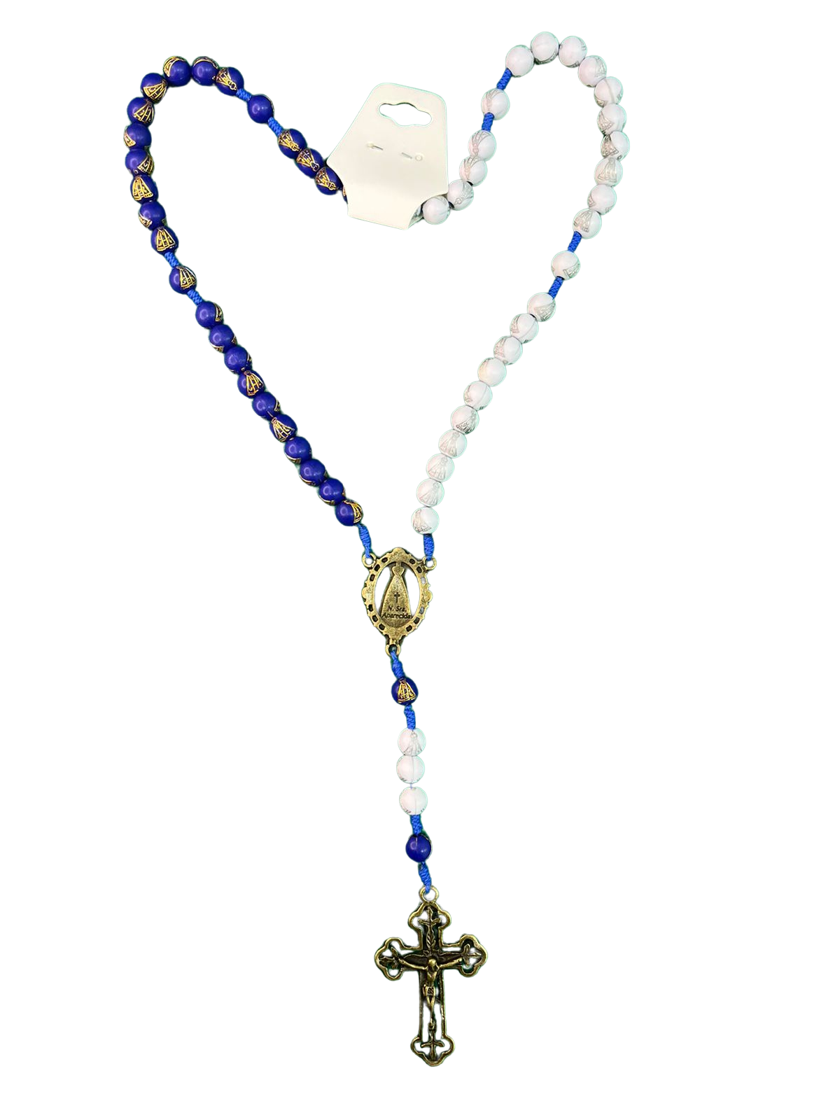 Terço 8mm Nossa Senhora Aparecida Bola Cruz Azul e Branco