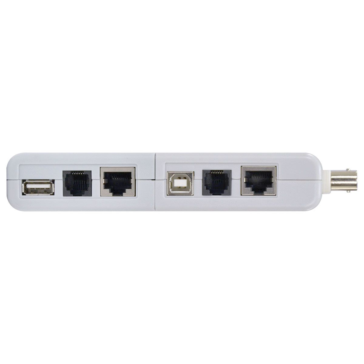 Testa continuidade elétrica em cabos Telefônico montado com RJ11 ou RJ12. De Rede ( patch cord ) montado com conector RJ45. Informática montado com conector USB, CFTV montado com conector BNC.