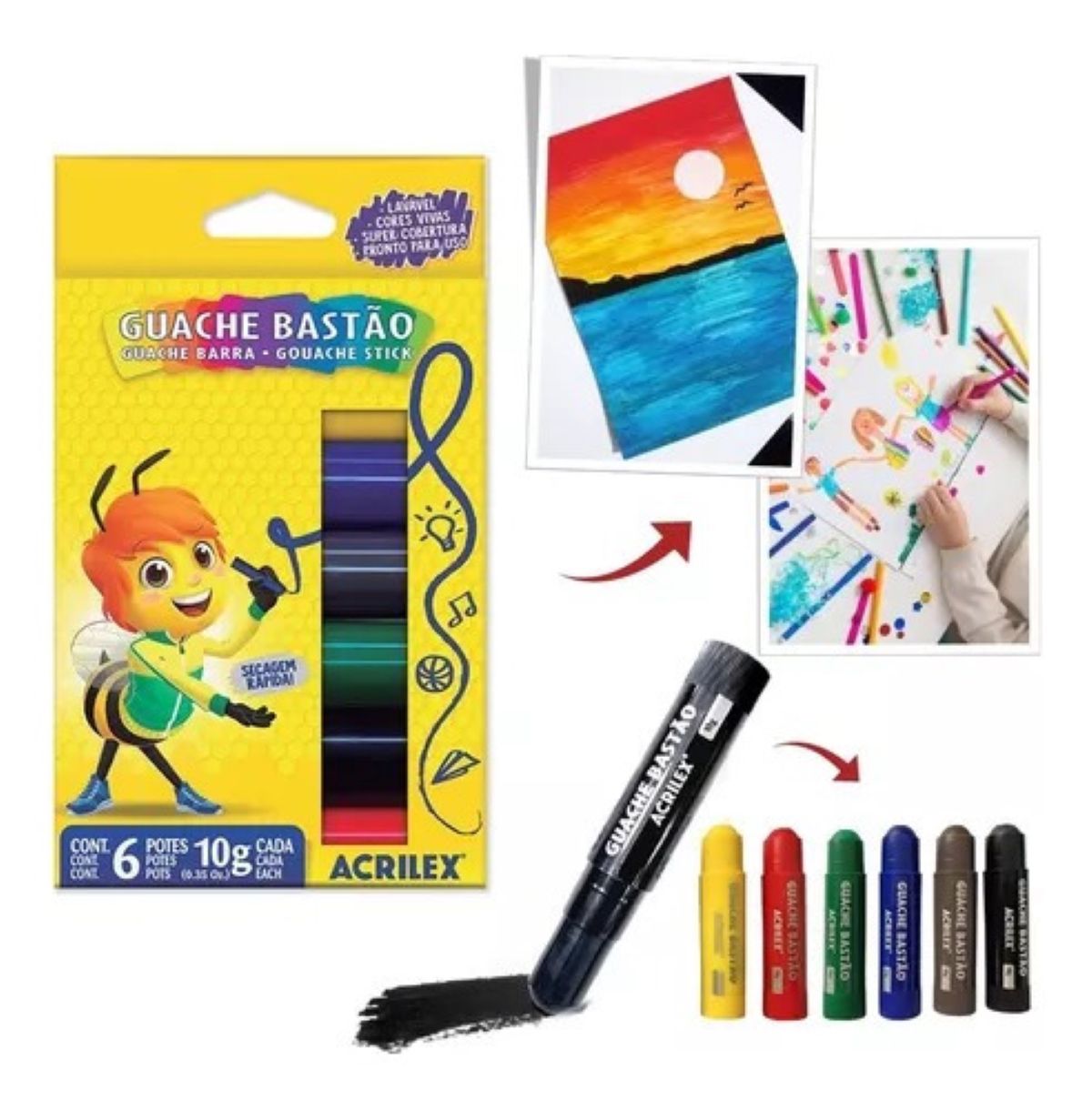 GUACHE BASTÃO 6 CORES - ACRILEX
