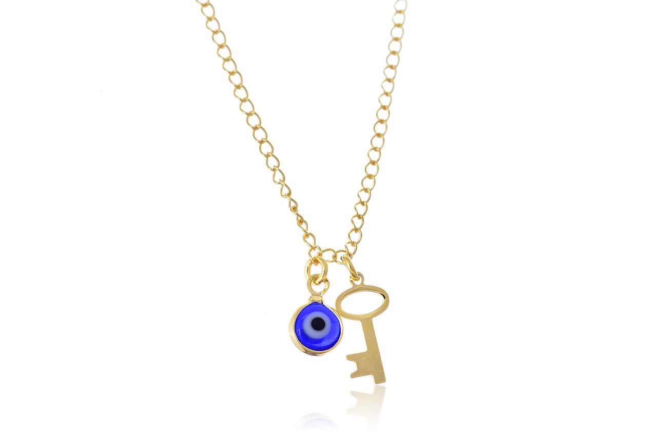 A tornozeleira com pingente de olho grego e chave é um acessório que abre novas oportunidades para combinações charmosas e que tenha a sua cara.