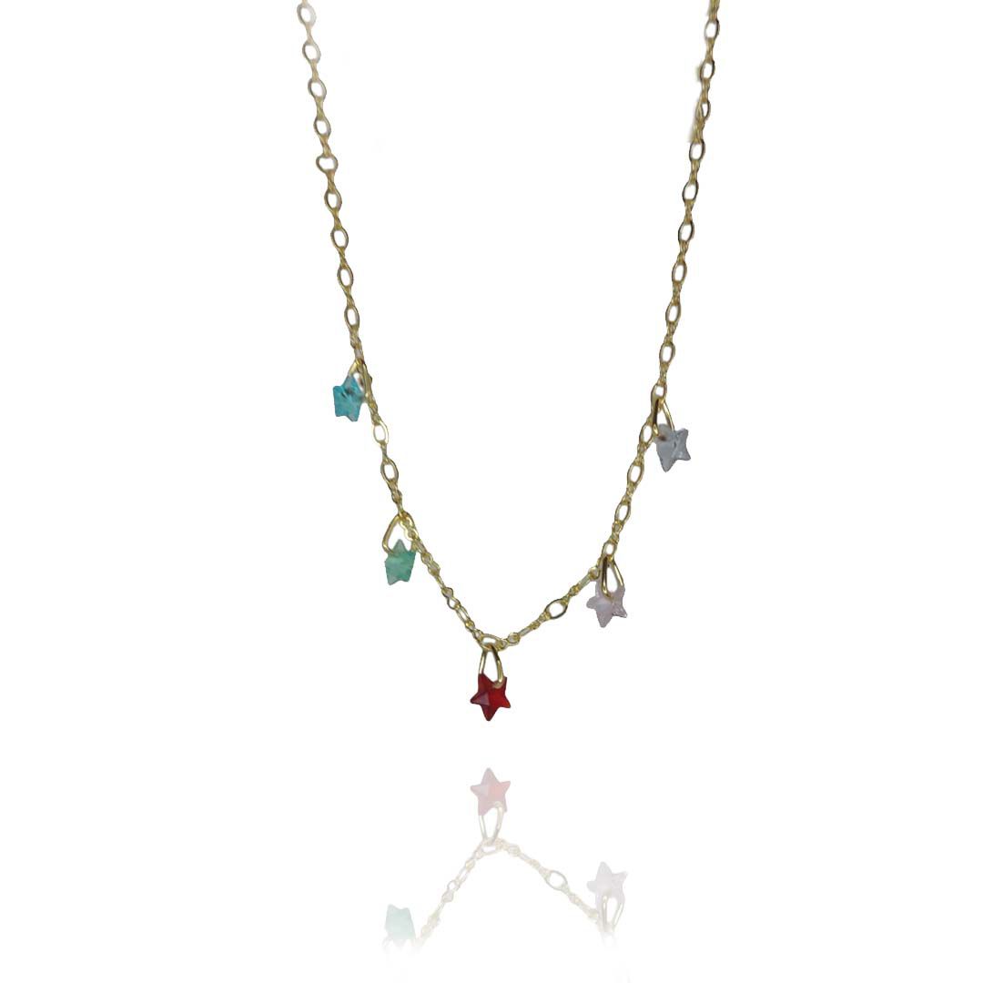 Essa tornozeleira é composta por lindas estrelas de zircônias coloridas no decorrer da corrente.