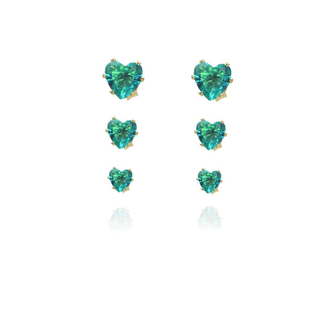 Prepare-se para se apaixonar perdidamente pelo Trio Coração de Zircônia Verde Água Folheado em Ouro 18k, uma verdadeira joia que transcende a elegância e a delicadeza.